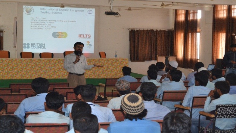 Seminar on Study abroad for clearing the papers like GRE, MAT, TOEFL etc. by Mr. Alihyder Vishwesvarya consultancy.